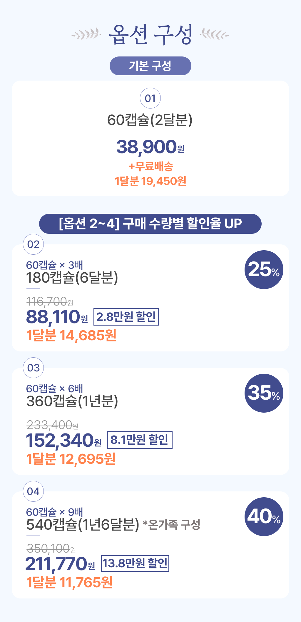 | 원료명 및 함량 | 각 제품별 상품페이지 최하단 참조 |